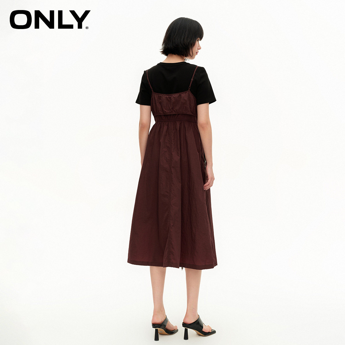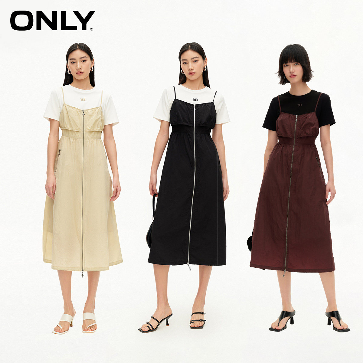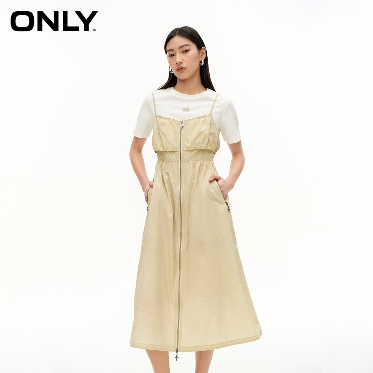 【ONLY奥莱清仓】春季新款时尚简约短袖长款吊带套装连衣裙女
