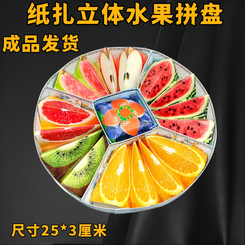 祭祀纸扎贡品水果拼盘橙子西瓜苹果寒衣上坟祭拜冥府五七烧纸用品