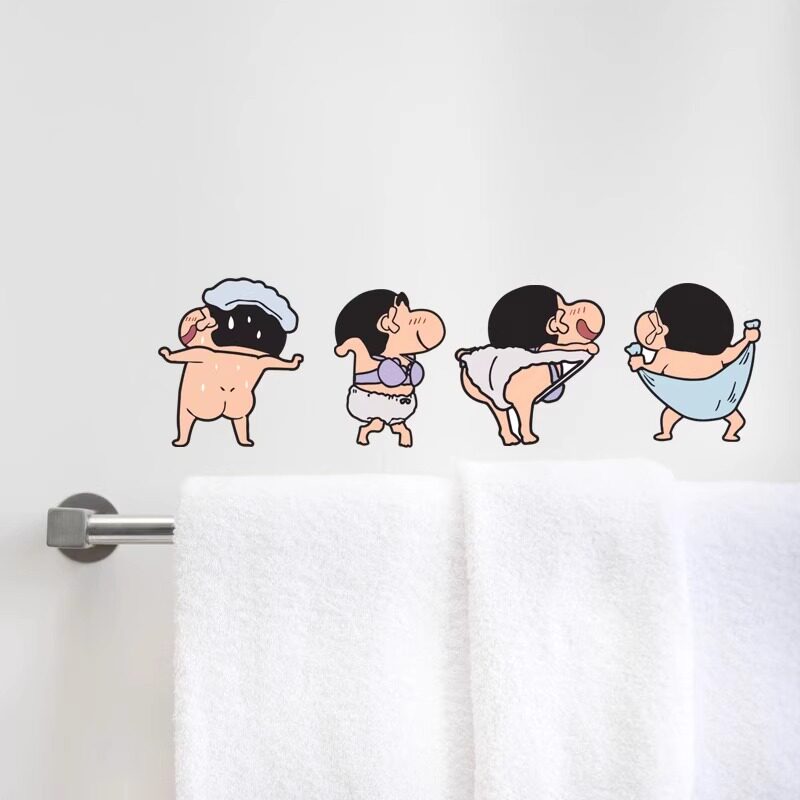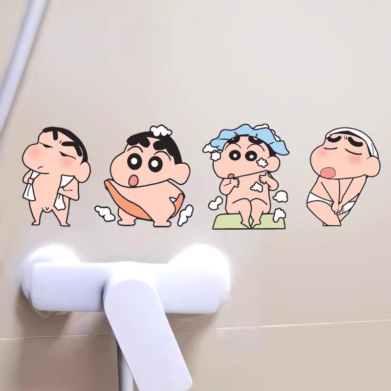蜡笔小新洗澡贴纸搞笑浴室防水卡通墙贴卫生间马桶贴厕所瓷砖贴画