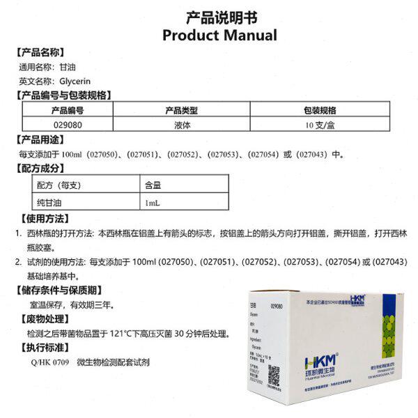 CN琼脂配套试剂甘油1mL/支×10/盒铜绿假单胞菌检测广东环凯