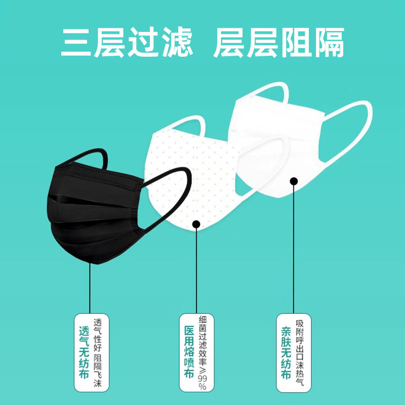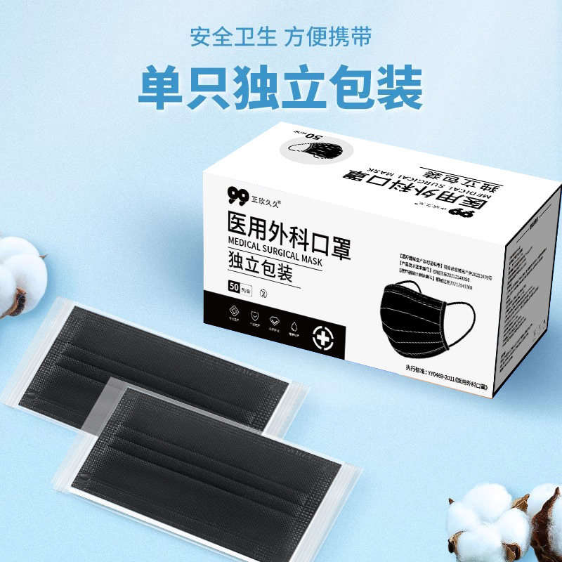 口罩黑色一次性医用外科医疗正品成人女高颜值独立包装官方旗舰店
