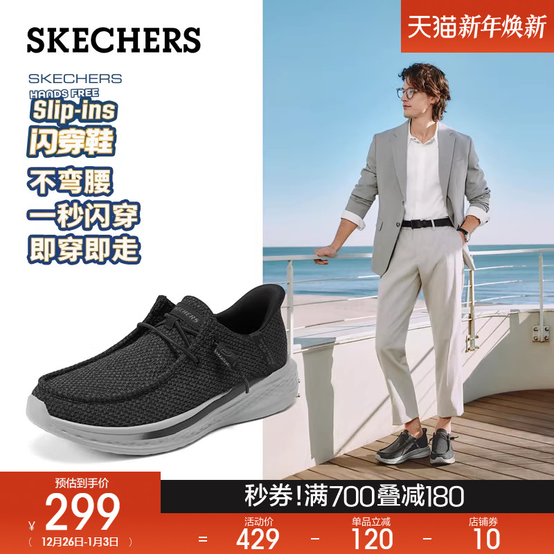 Skechers斯凯奇闪穿鞋2025秋冬新款男休闲乐福鞋一脚蹬软底通勤鞋