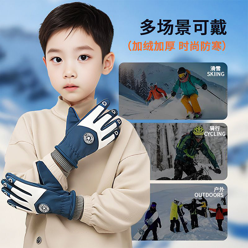 儿童手套冬季防水防滑玩雪保暖加绒学生骑行分指手套滑雪防寒神器
