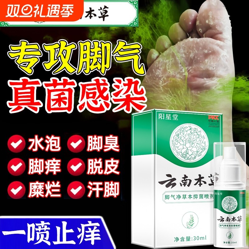 云南本草脚气喷雾止痒脱皮杀菌脚臭膏水泡烂脚丫真菌感染专用喷剂