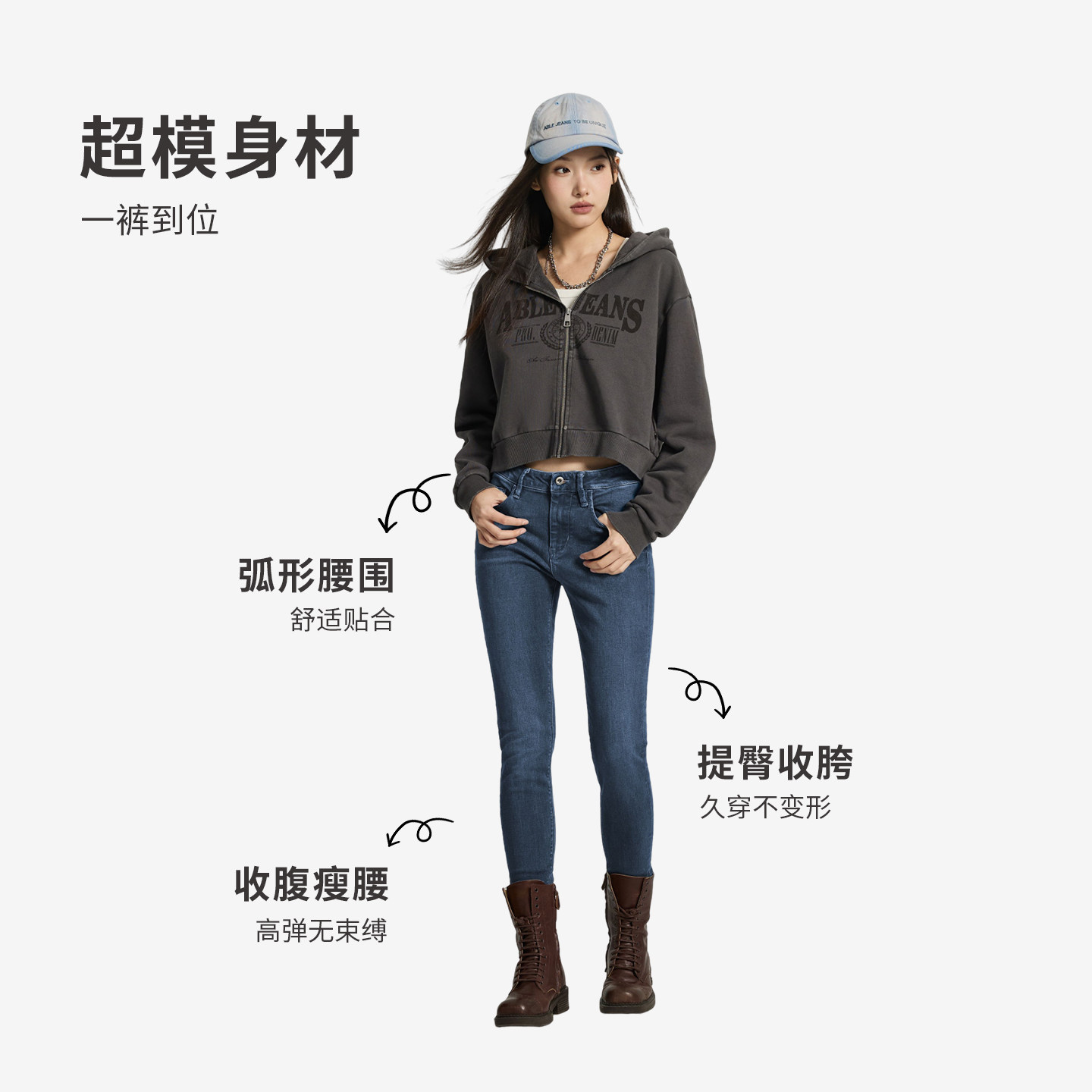 ABLE JEANS【提臀裤】秋冬女士高腰修身显瘦弹力紧身牛仔裤铅笔裤