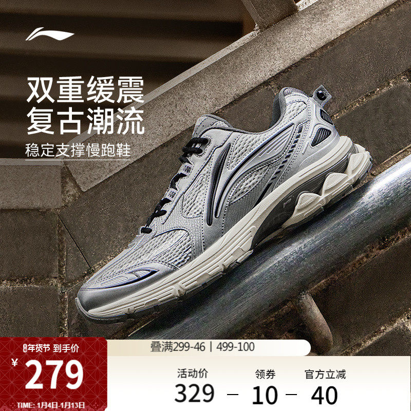 李宁扶摇2.0 | 跑步鞋男鞋复古潮流休闲百搭老爹鞋软弹减震运动鞋