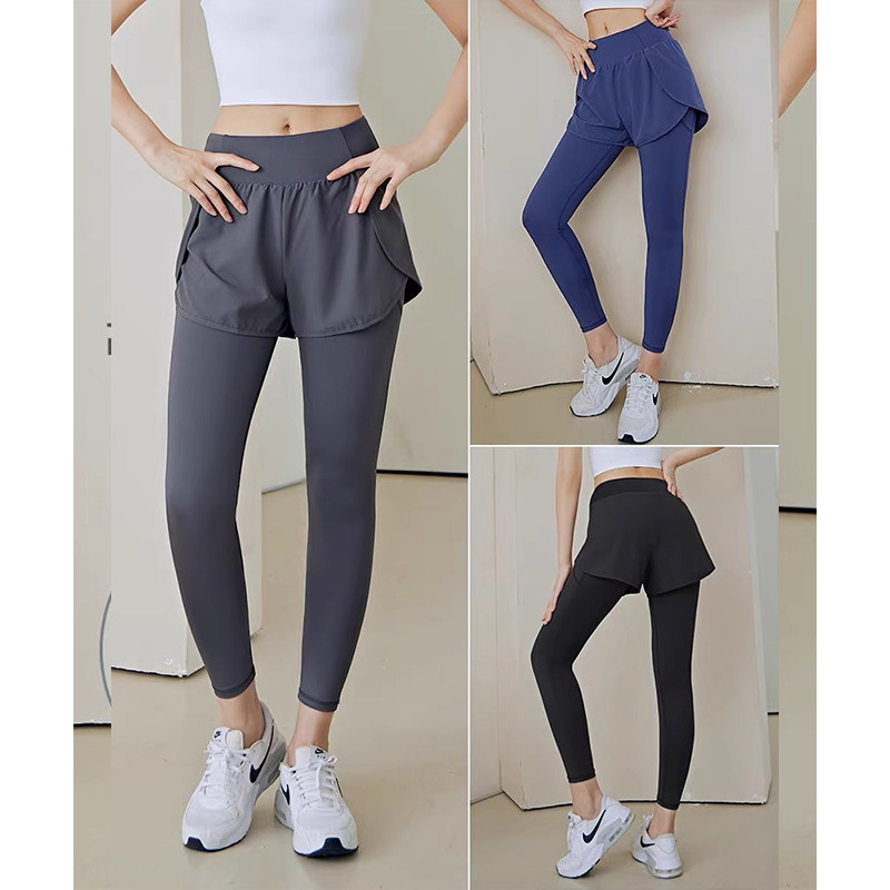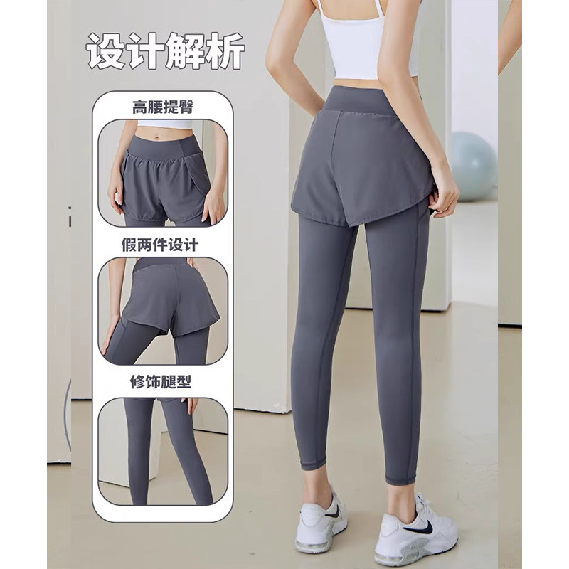 瑜伽裤女秋提臀假两件健身晨跑步运动套装专业骑行长裤运动裤速干
