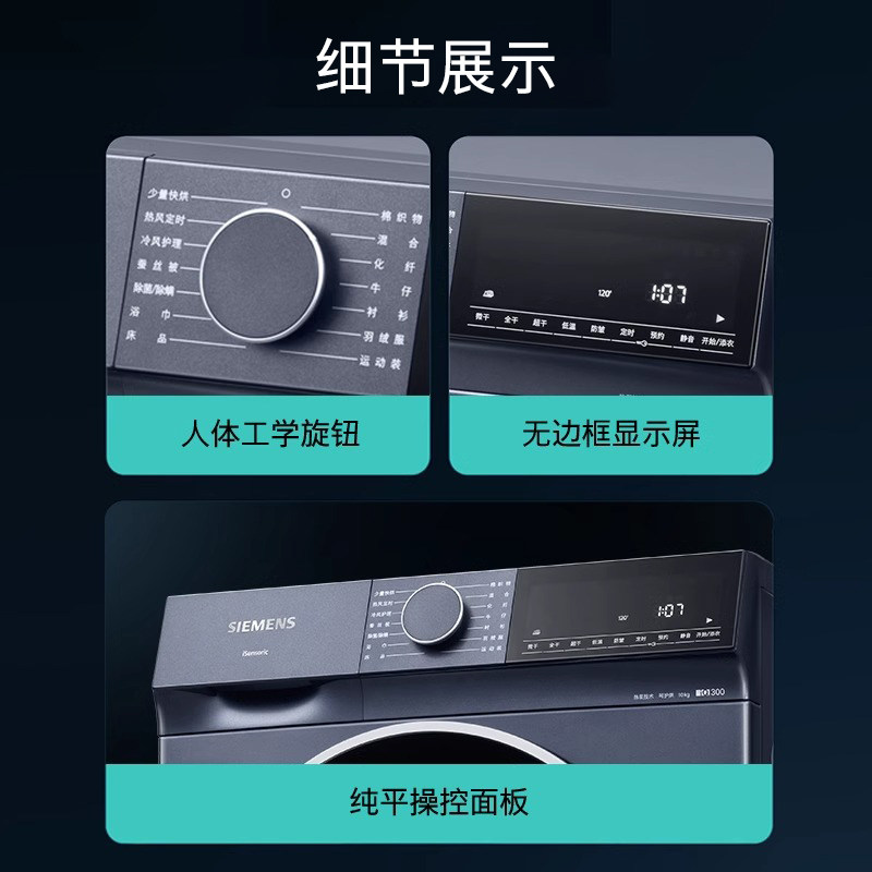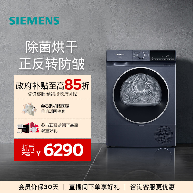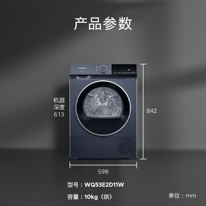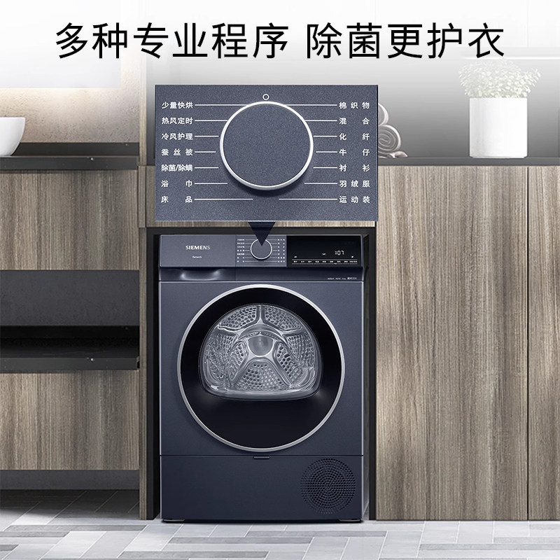 【蓝宝石】西门子10公斤官方滚筒烘干机家用全自动热泵干衣机2D11