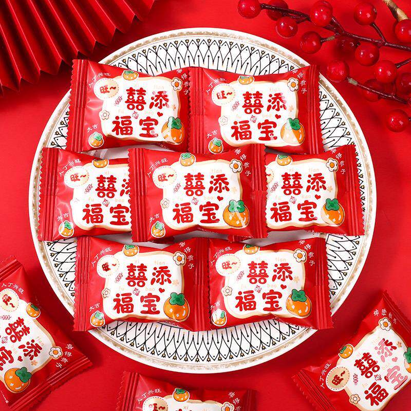 喜添福宝曲奇饼干宝宝诞生满月伴手礼周岁百日宴喜糖喜饼散装