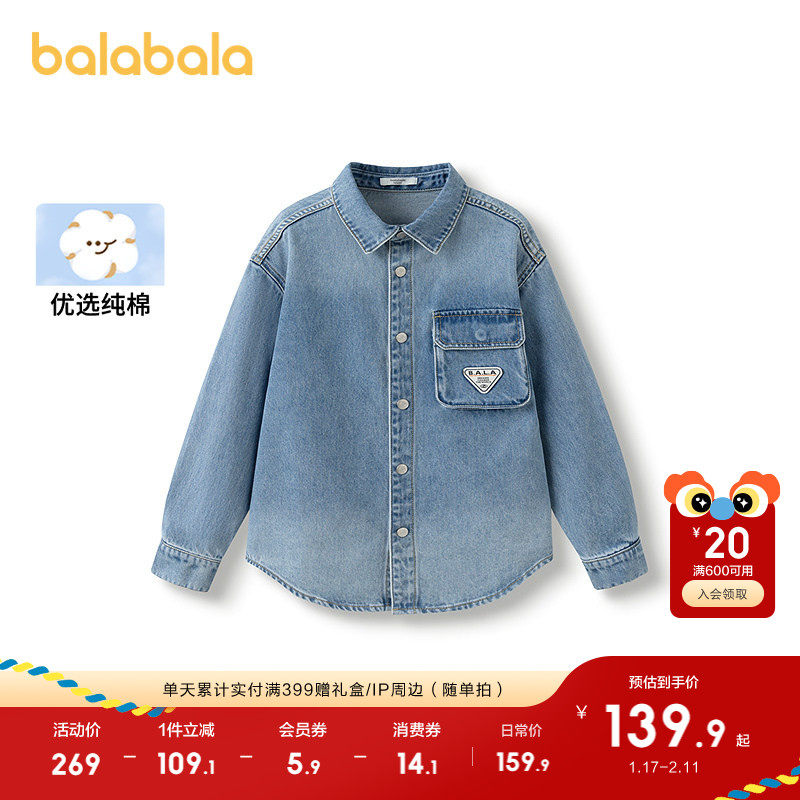 巴拉巴拉童装男童长袖衬衫儿童上衣2025新考春秋装纯棉牛仔时尚潮