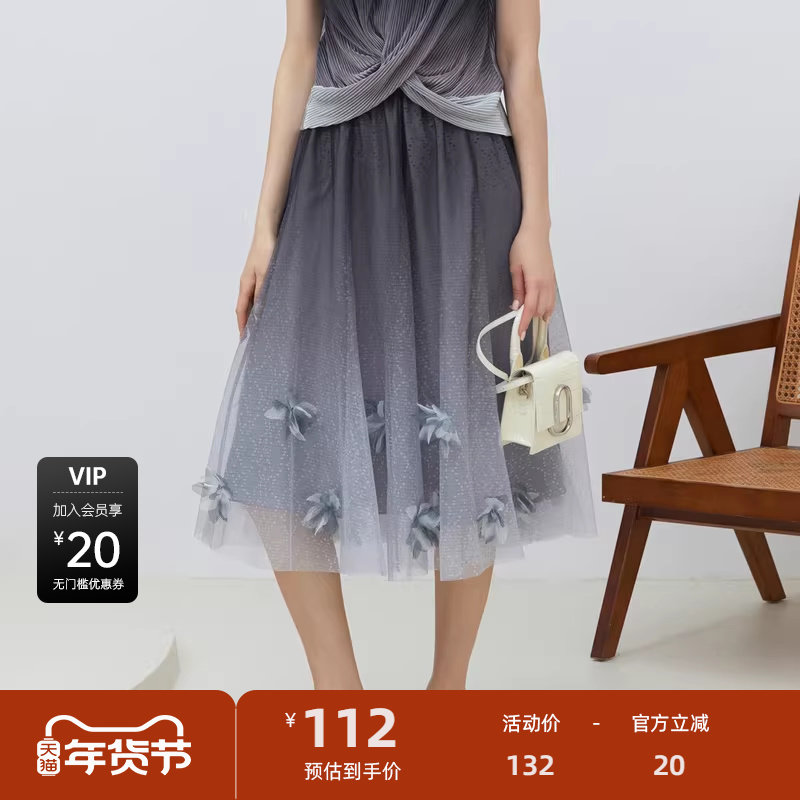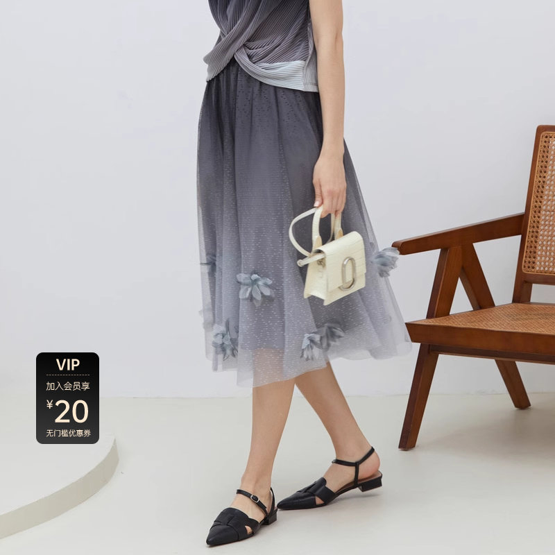 sdeer圣迪奥女装秋松紧渐变波点绣花网纱A字伞裙S223Z1114