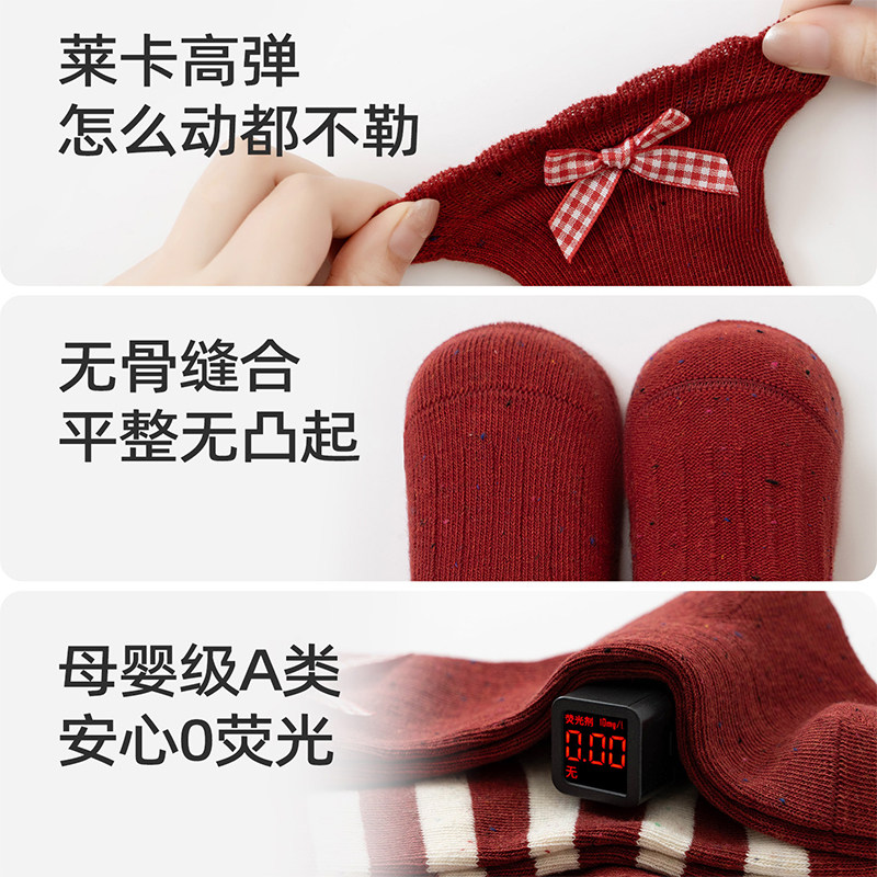 宝宝袜子春秋红色a类公主蝴蝶结女宝新生婴儿中筒无骨小腿袜厚款