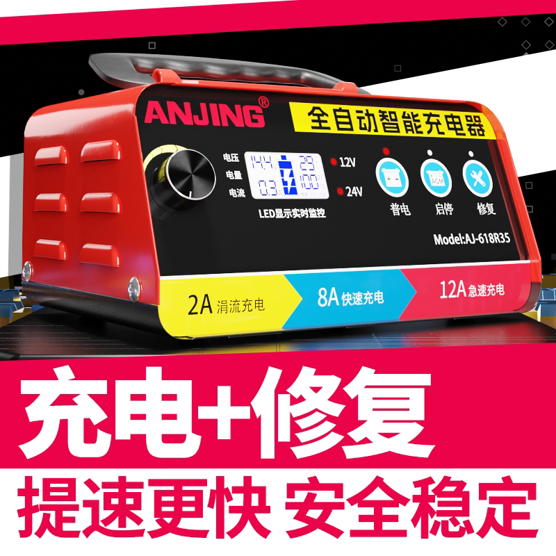 汽车电瓶充电器12V24V智能脉冲修复全自动大功率充电机工厂直供