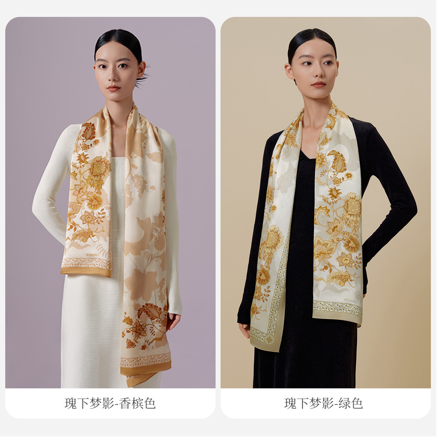 万事利新品100%桑蚕丝真丝丝巾女披肩送礼双面印花长巾-瑰下梦影