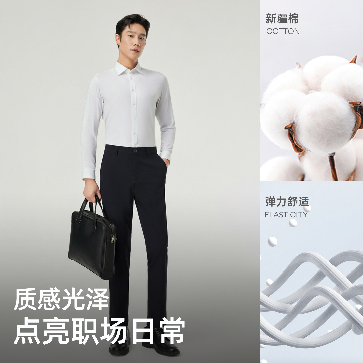 【云感衬衫】金利来春夏新款莫代尔弹力抗皱男士商务长袖白色衬衣