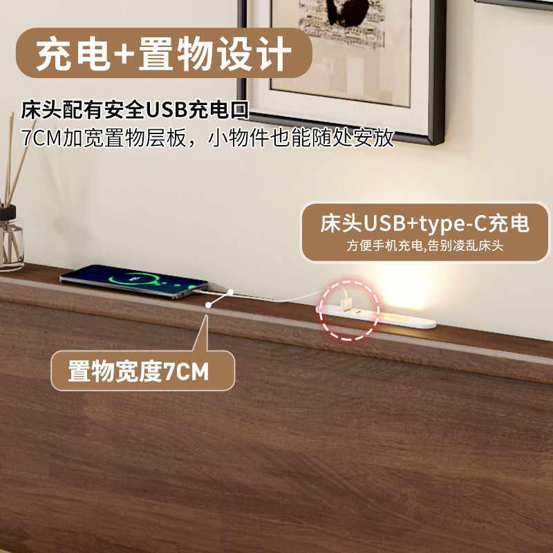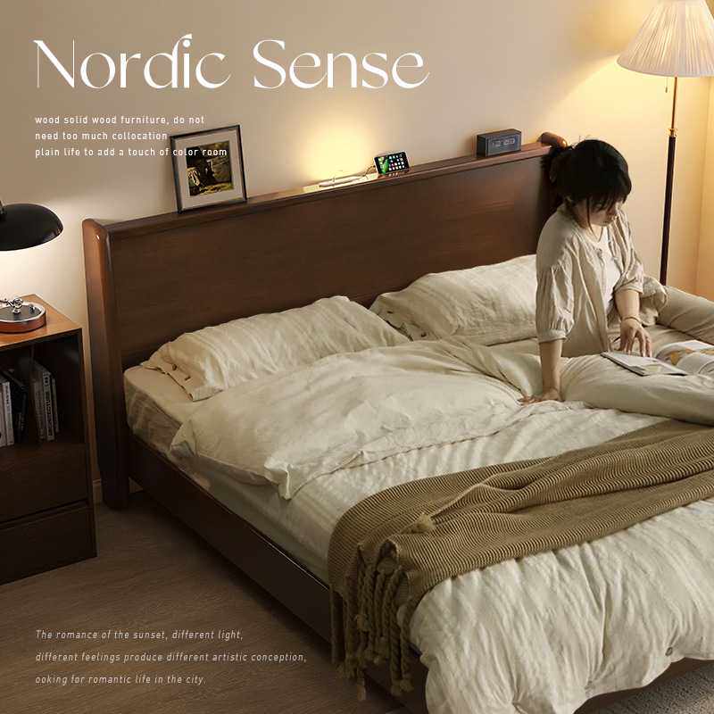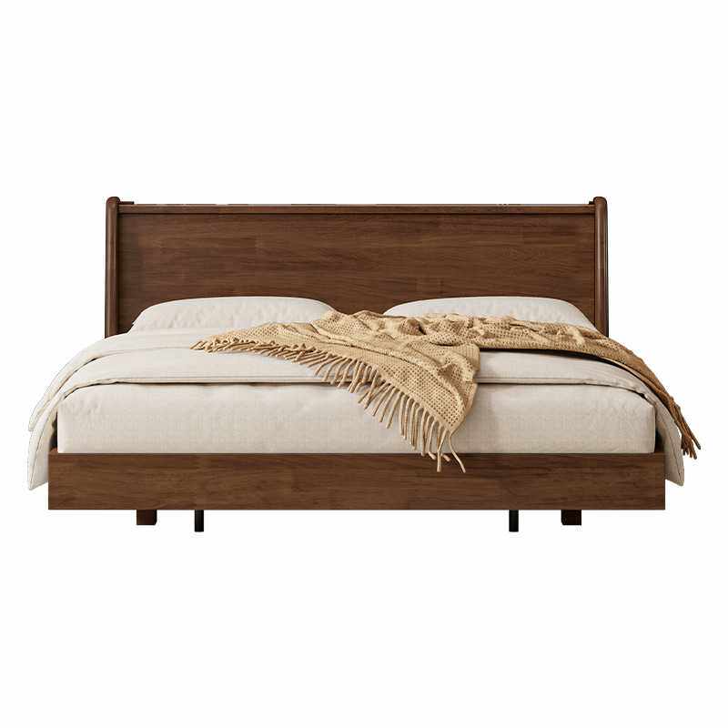 北欧全实木床胡桃色现代简约1.8m双人悬浮床中古风复古床主卧大床