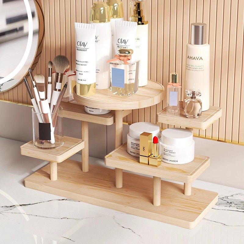 实木桌面展示架收纳置物架办公桌面整理化妆品杯子香水小摆件陈列美工区作品手办点心多肉花架阶梯吧唧展示架