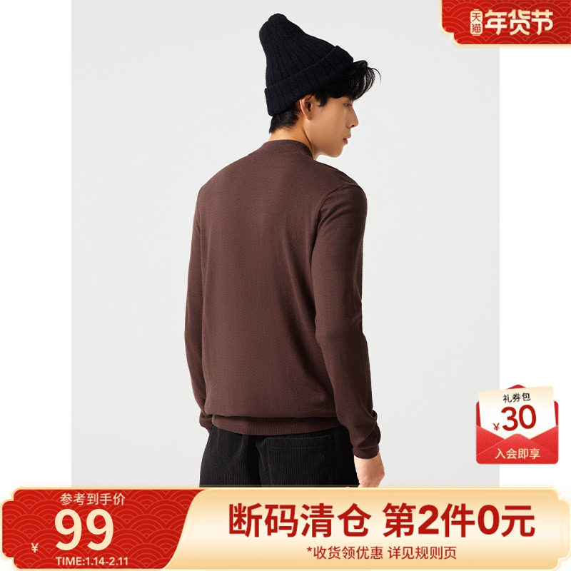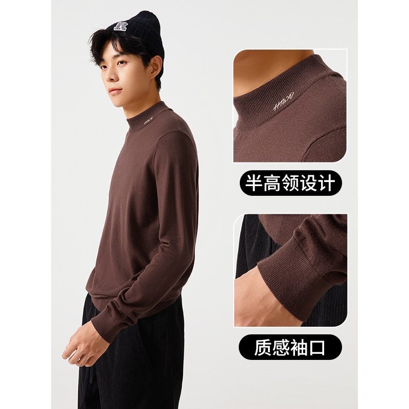 热风2023年冬季新款男士基础半高领长袖针织衫休闲纯色打底毛衣