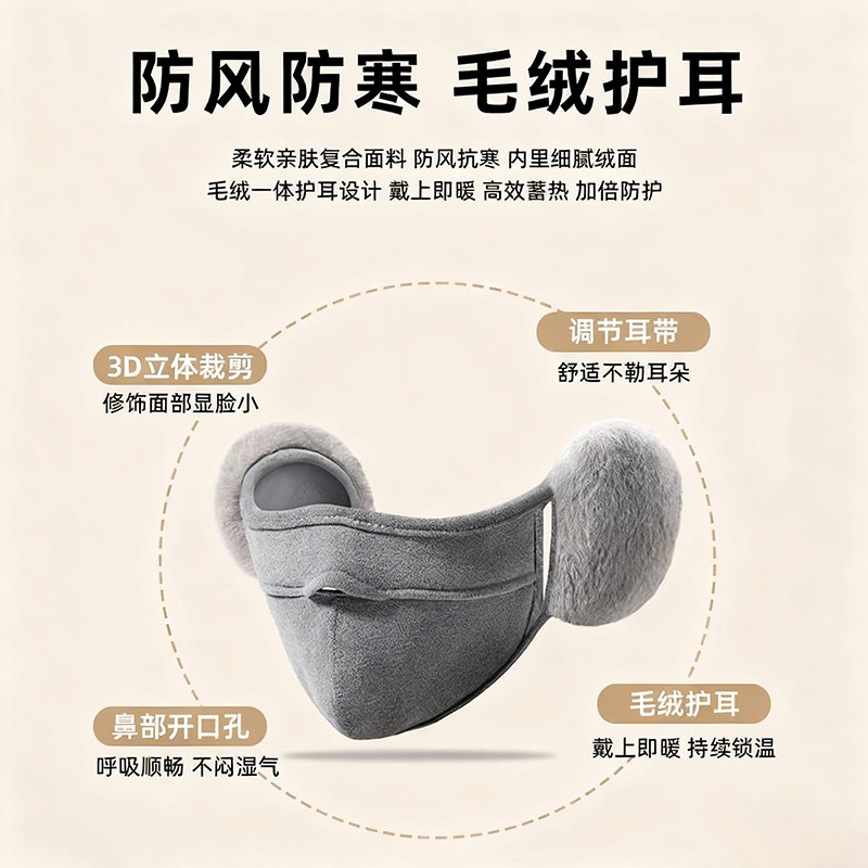 耳罩口罩一体防寒保暖冬加厚耳套骑行护耳面罩二合一耳暖骑车防风