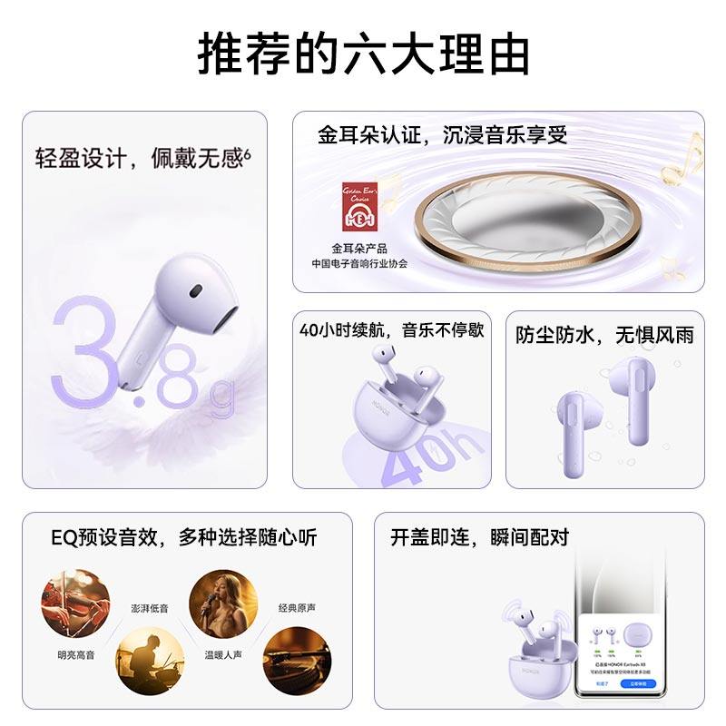 荣耀EarbudsX8无线蓝牙耳机政府补贴半入耳通话降噪官方旗舰正品