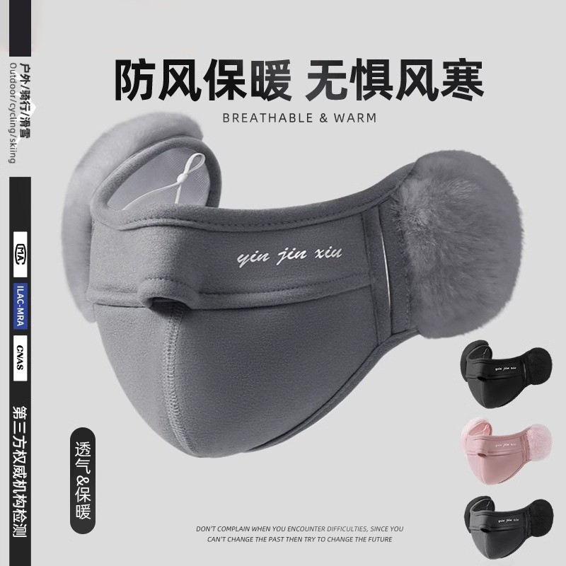 加绒防风口罩带耳罩女秋冬季保暖护耳神器面罩耳套防冻全脸防护