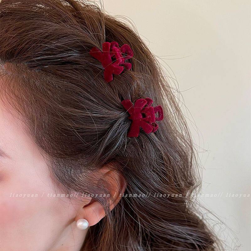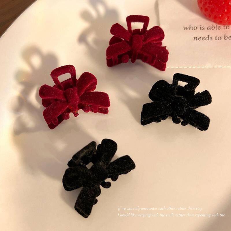 植绒蝴蝶结发夹女侧边碎发小抓夹小号前额刘海夹子头饰高级感发卡