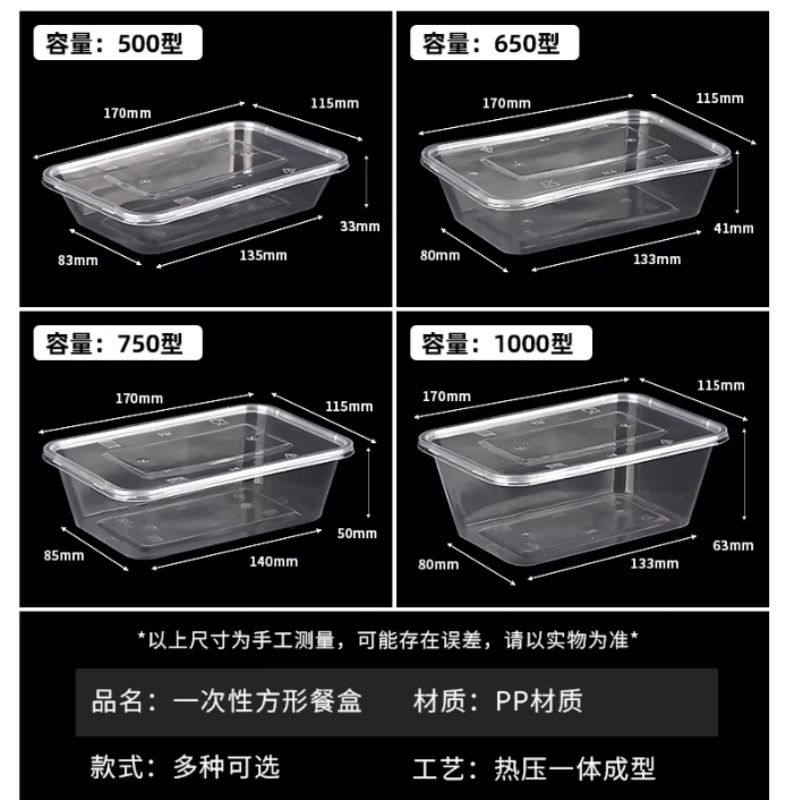 750ml/650方形餐盒一次性打包盒商用长方形快餐塑料带盖外卖饭盒