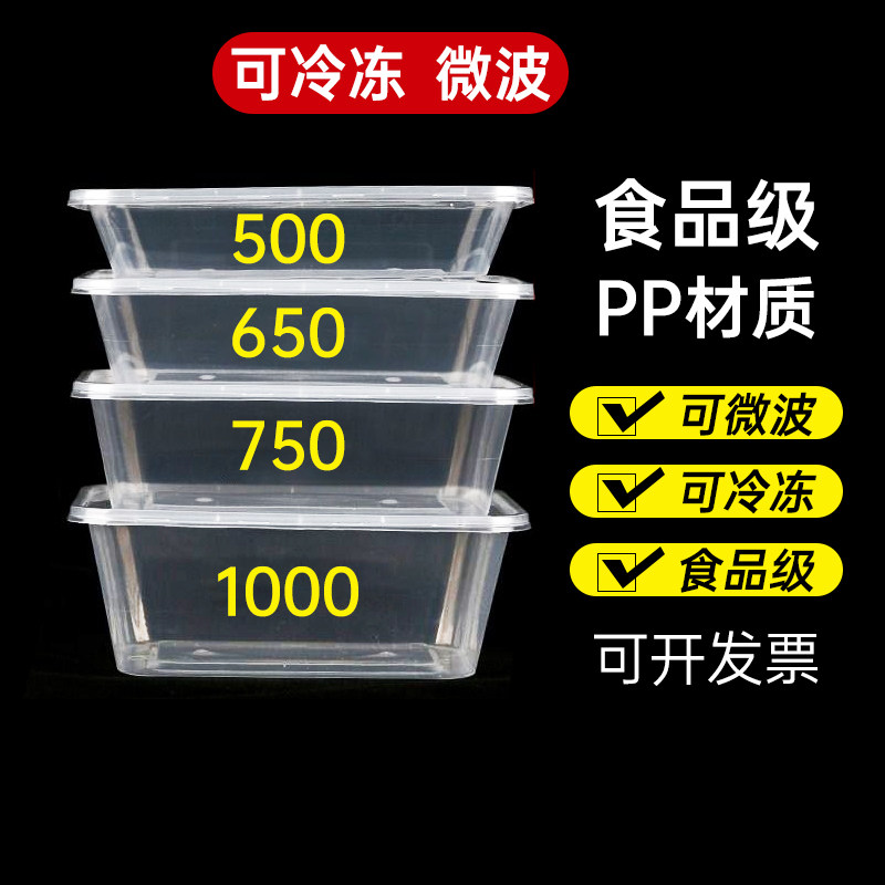 长方形圆形一次性餐盒塑料打包加厚透明外卖饭盒快餐带盖汤碗方盒