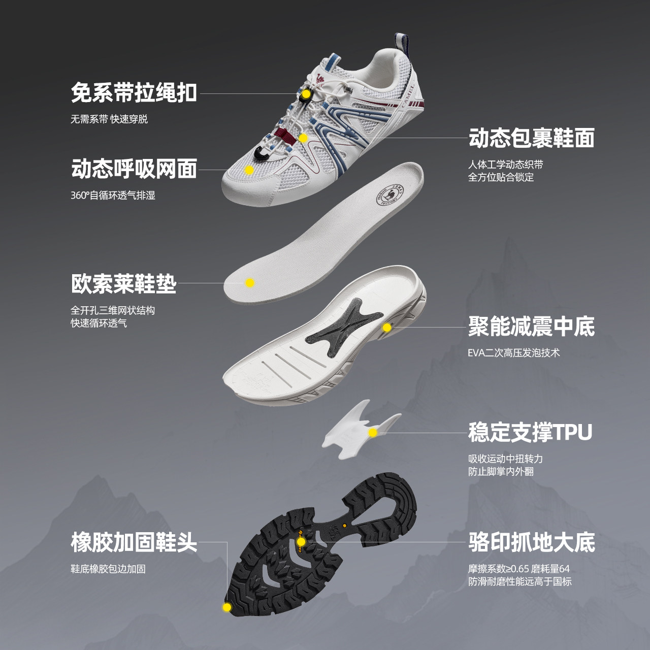 骆驼盘龙登山鞋女防滑秋冬户外透气网面耐磨轻便运动鞋男徒步鞋子