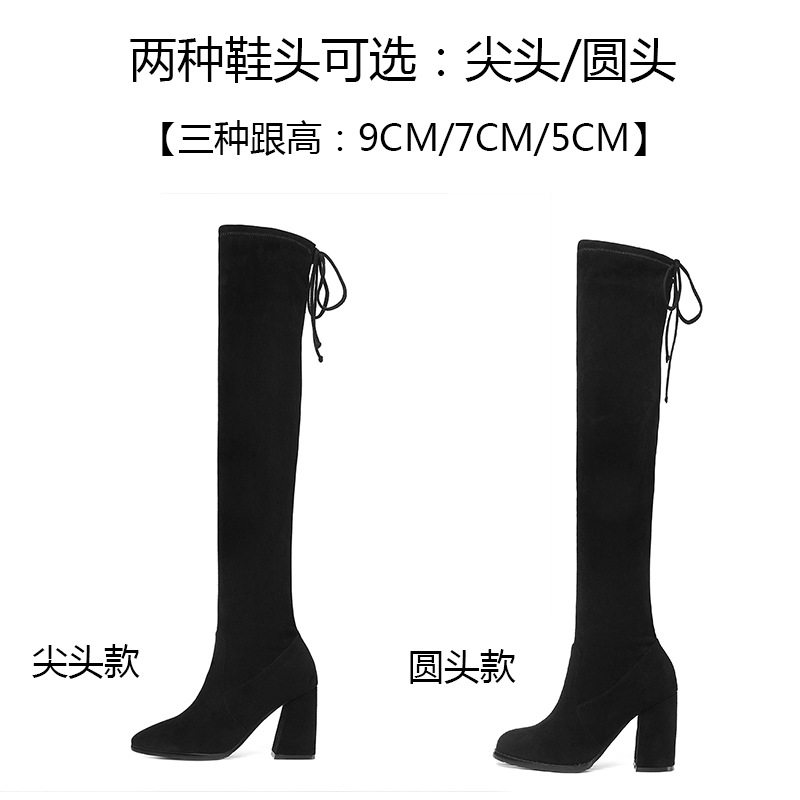 优尚品~超显腿长过膝高筒弹力瘦瘦靴绒面粗跟长筒靴高跟尖头长靴
