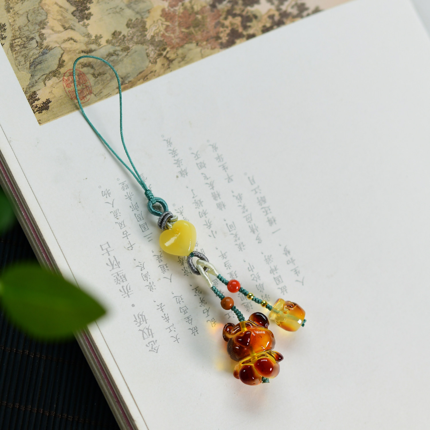 天然蜜蜡小熊蜜罐爱心手机链 LH618