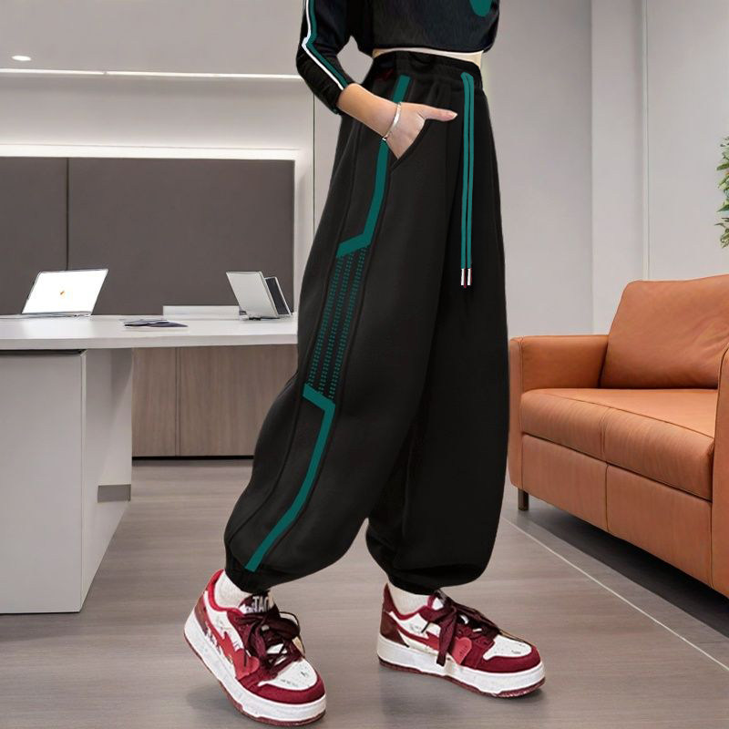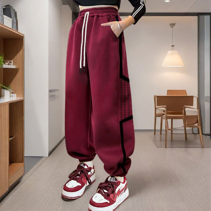 女童裤子春秋款女大童秋款运动裤束脚卫裤秋天儿童哈伦裤红色新款