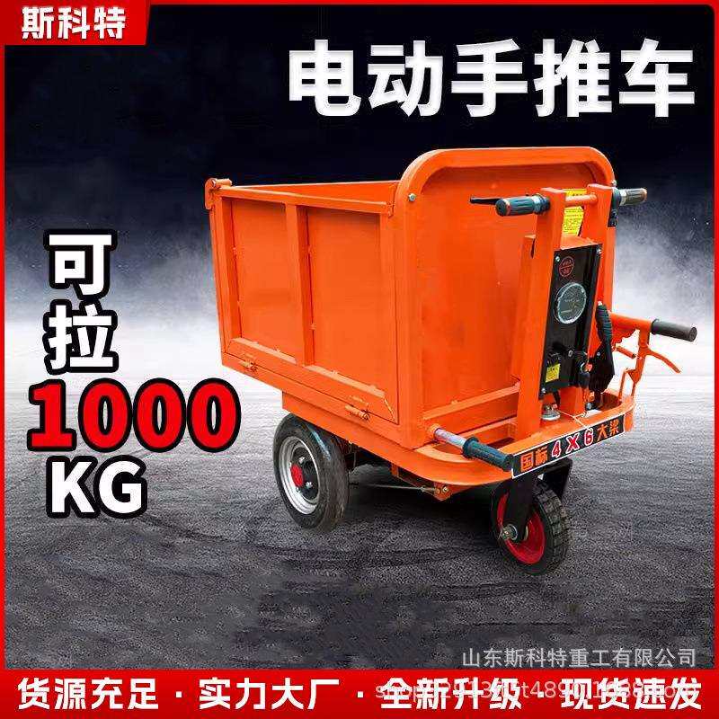 工地电动手推式搬运车农用载重王工程三轮车拉水泥砂浆翻斗车