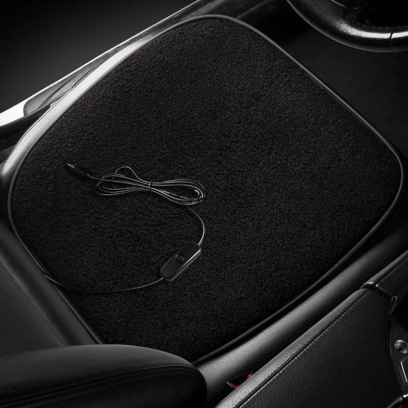 汽车坐垫冬季毛绒车载电加热垫12V点烟器座垫加绒保暖后排电热