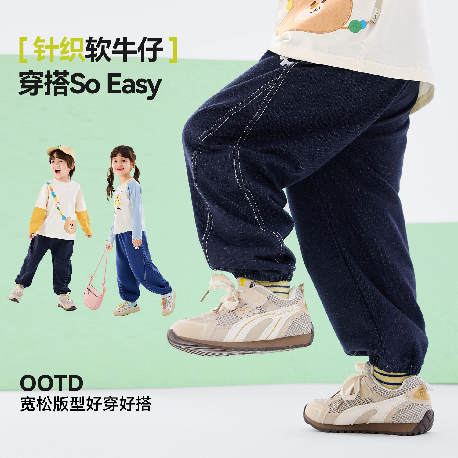 soyo舍予良仓童装儿童加绒牛仔裤秋冬装柔软针织男童长裤女童裤子