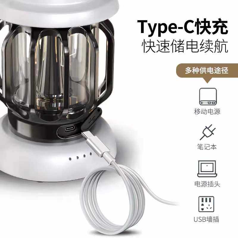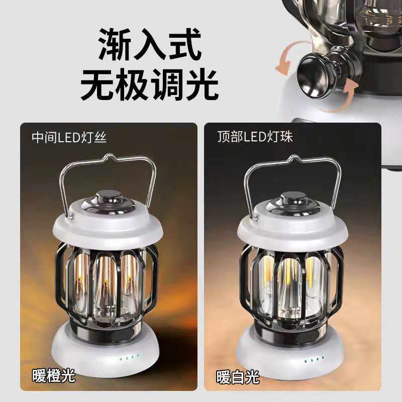 复古营地LED无极调光手提灯USB可充电户外露营马灯帐篷野营灯