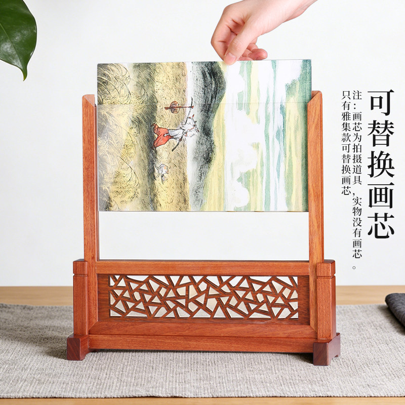紫光檀 名木插屏 非洲酸枝木 仿古中式实木雕刻书法用品文房四宝桌面高档摆件 插屏屏风书桌毛笔套装新年礼物