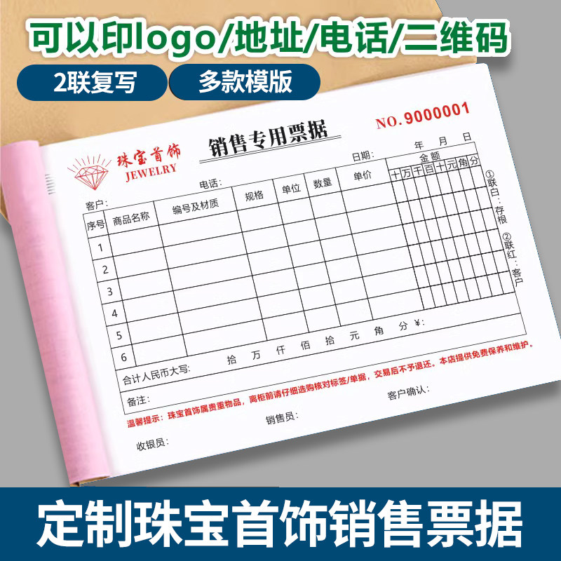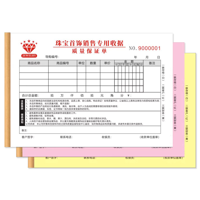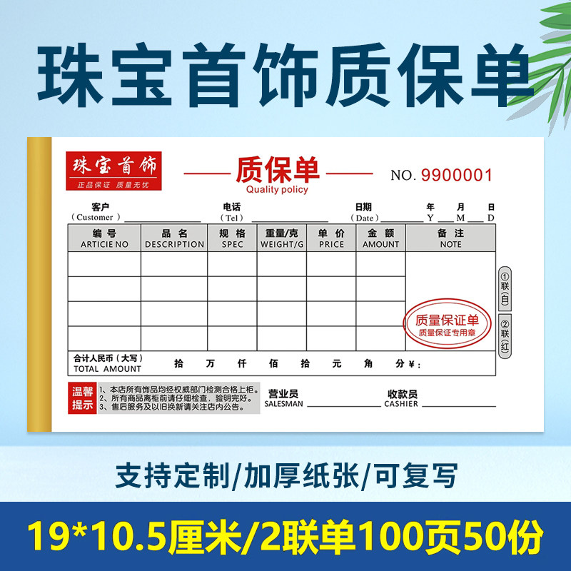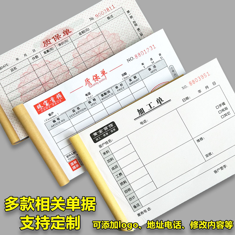 黄金珠宝首饰清单商品收据本银饰质量保证单翡翠质保购货销售小票