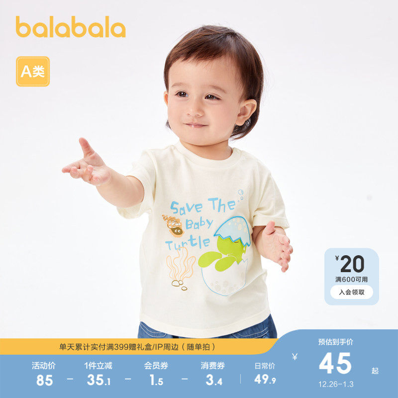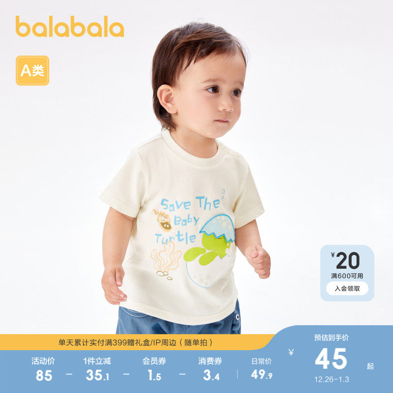 巴拉巴拉婴儿t恤宝宝上衣男童衣服儿童短袖夏装趣味印花可爱萌趣