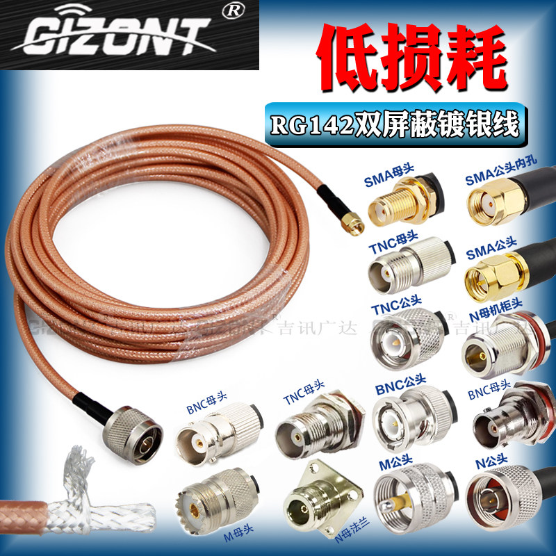 RG142馈线话筒天线延长线同轴射频跳线SMA/BNC/TNC/M/N头公对母GPS/GNSS蘑菇头转接线2.4G天线4G低损耗连接线