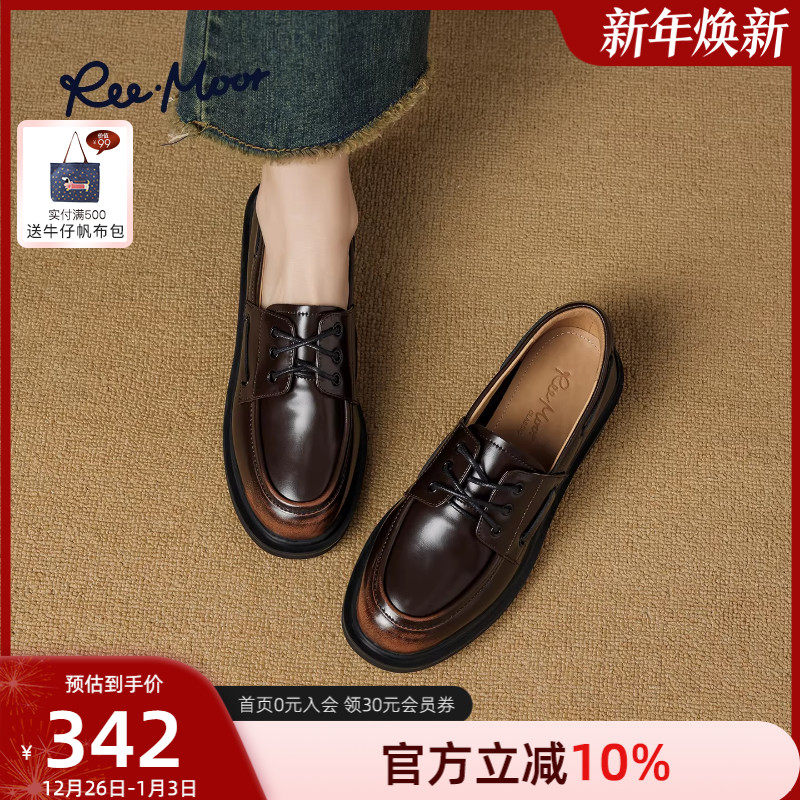 REEMOOR睿慕2025秋季新款英伦风小皮鞋女圆头厚底乐福鞋平底单鞋