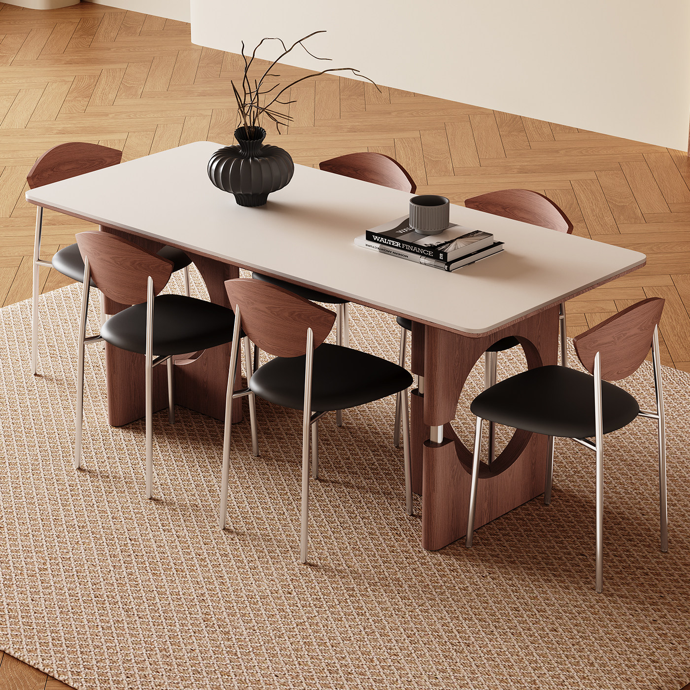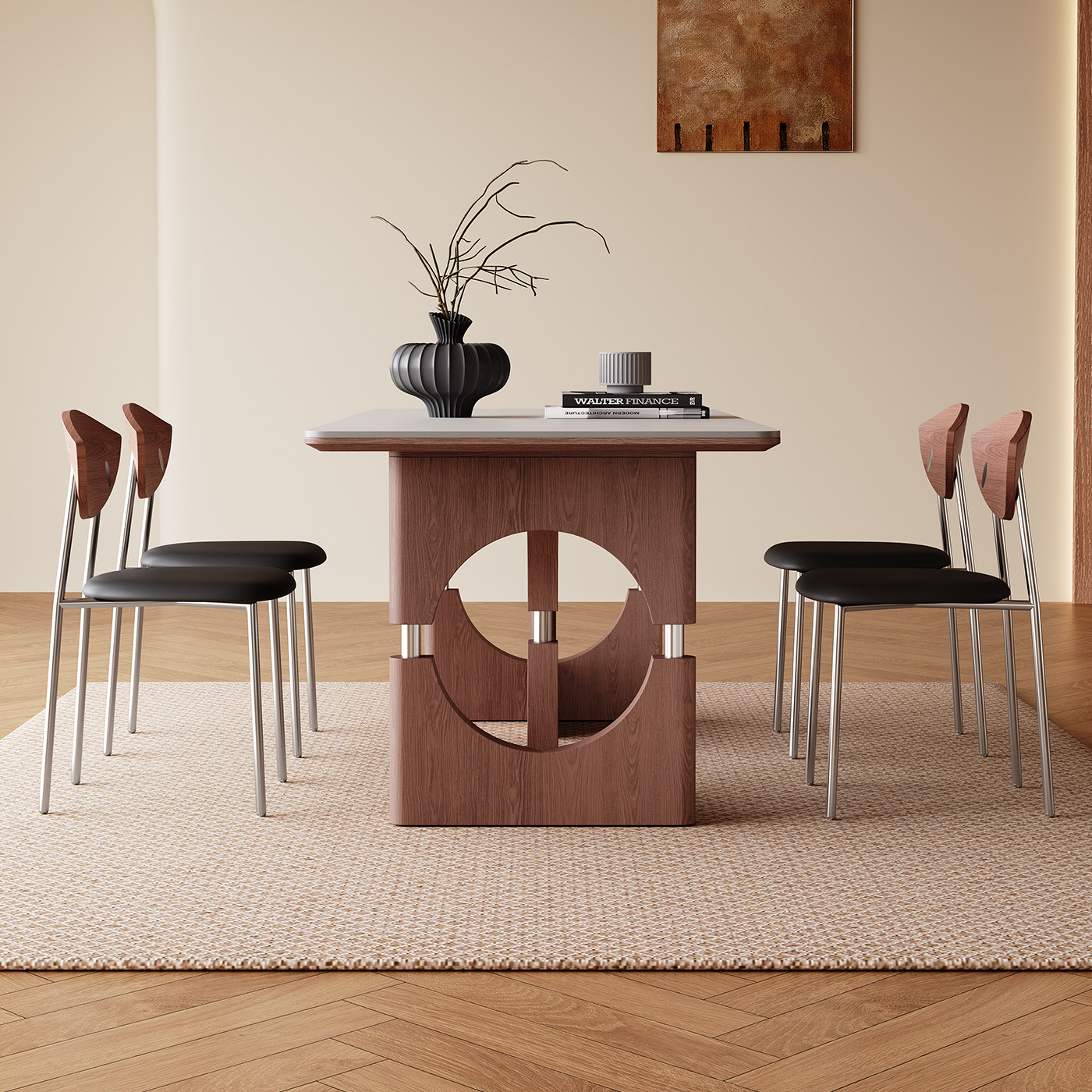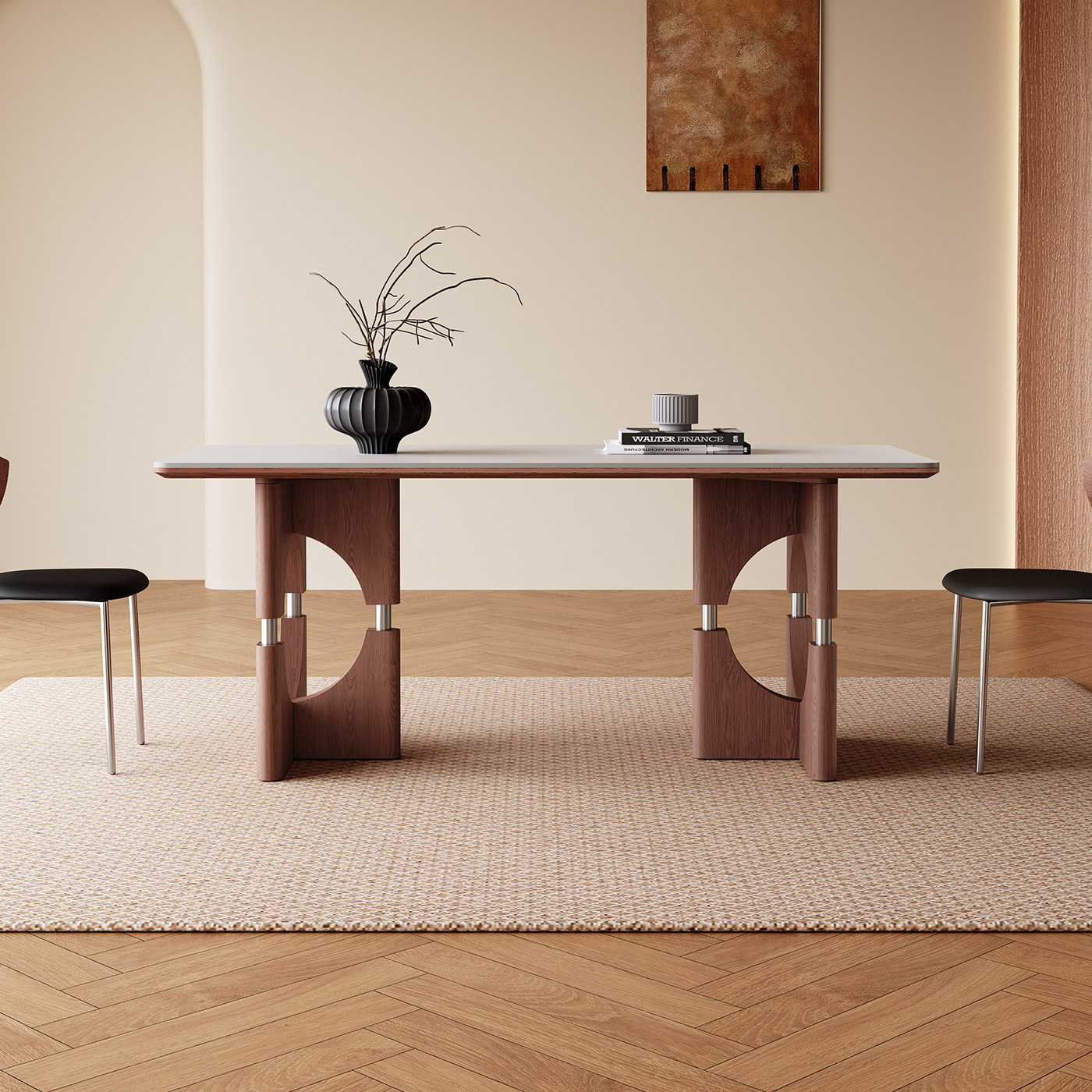 实木餐桌小户型家用简约轻奢长方形全托底板白蜡木中古风岩板餐桌