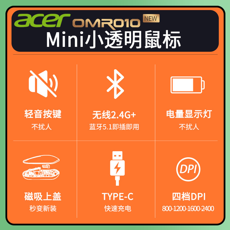 宏碁OMR010透明无线鼠标蓝牙双模台式笔记本电脑平板通用可充电
