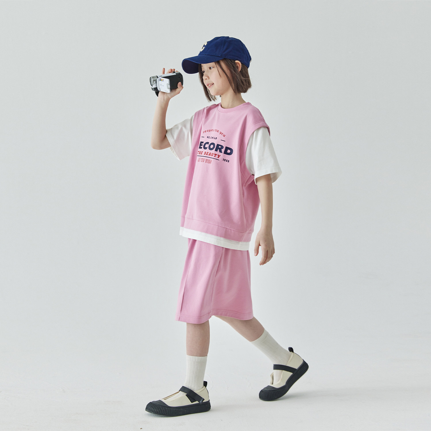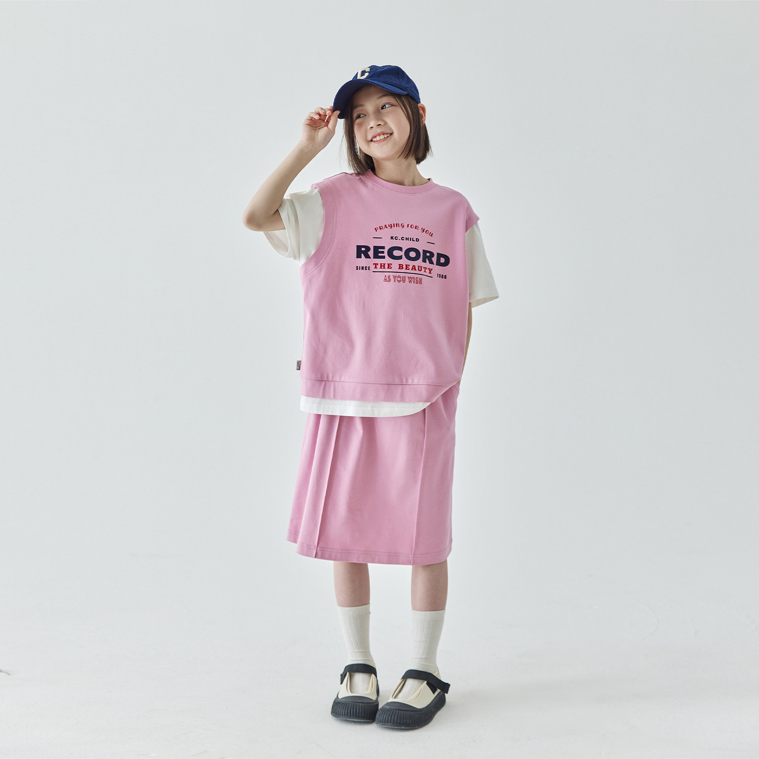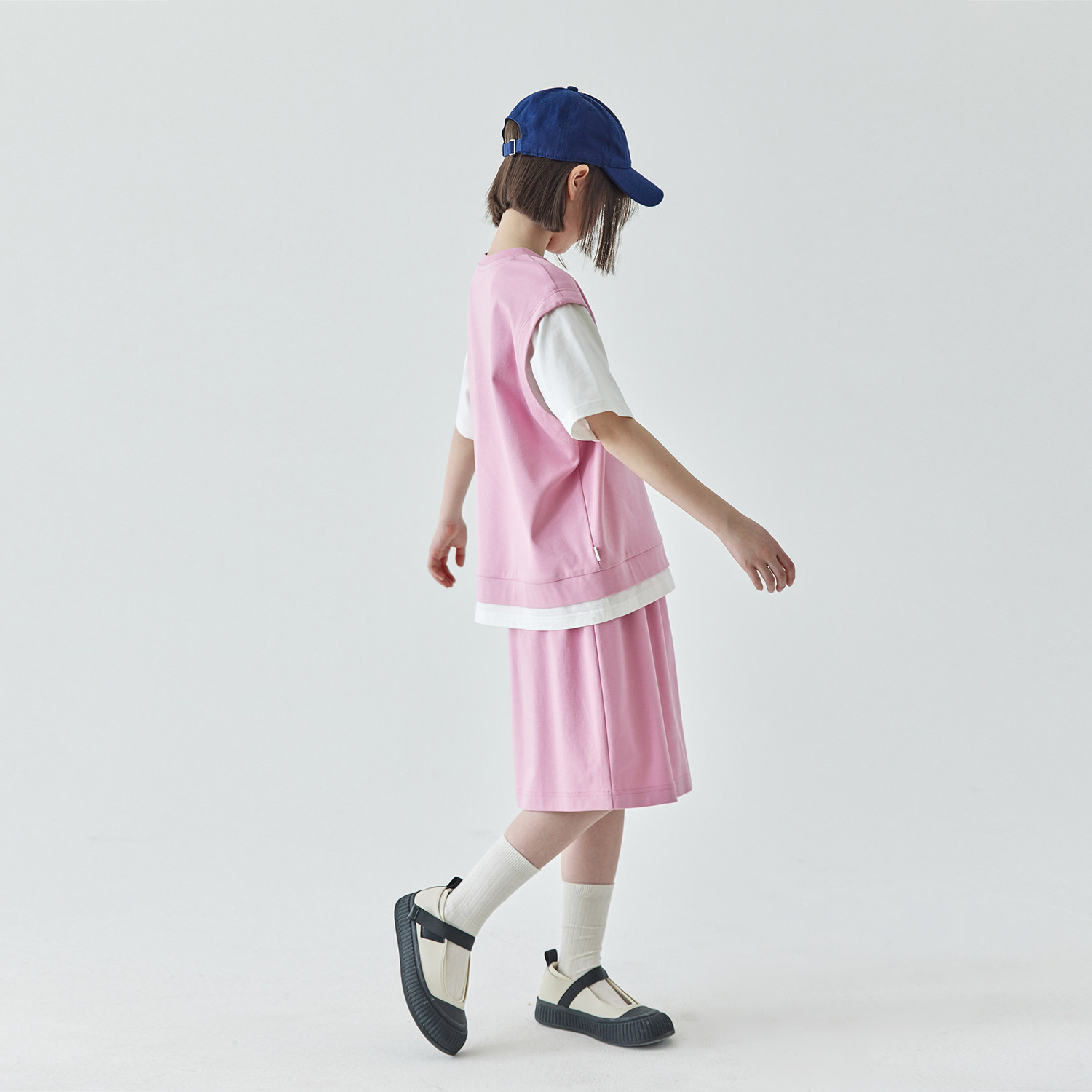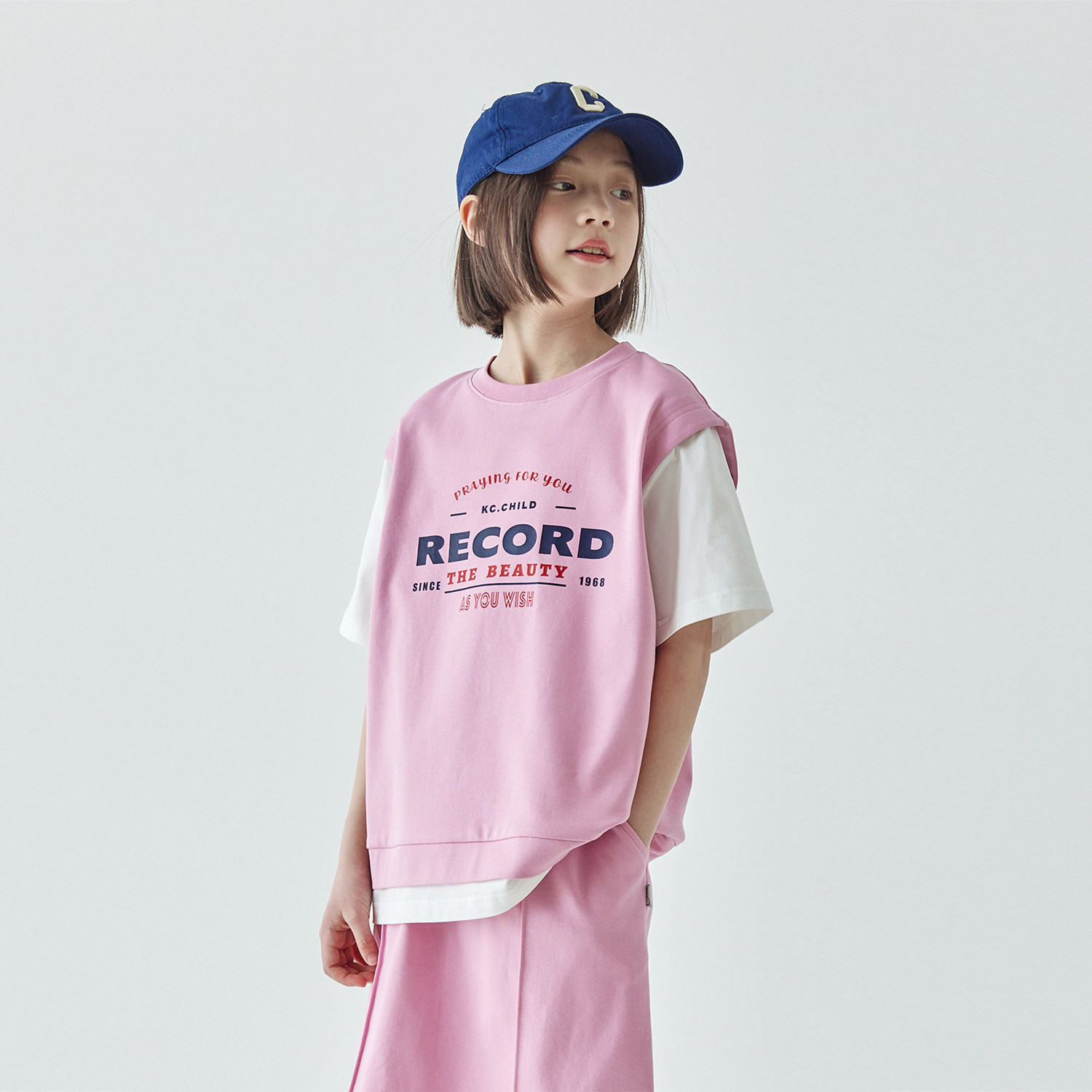 棵初2025夏季新品女童假两件T恤半裙套装亲子款休闲学院风两件套