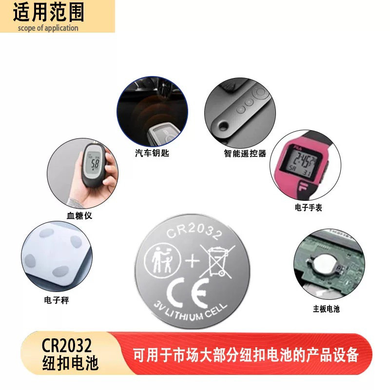 CR2032纽扣电池3V汽车遥控器主板体重秤温度计原装纽扣锂电池通用