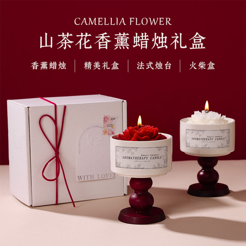 红色山茶蜡烛礼盒送女生生日礼物高级实用结婚伴手礼送闺蜜朋友