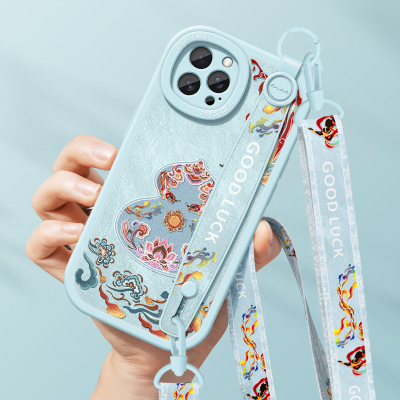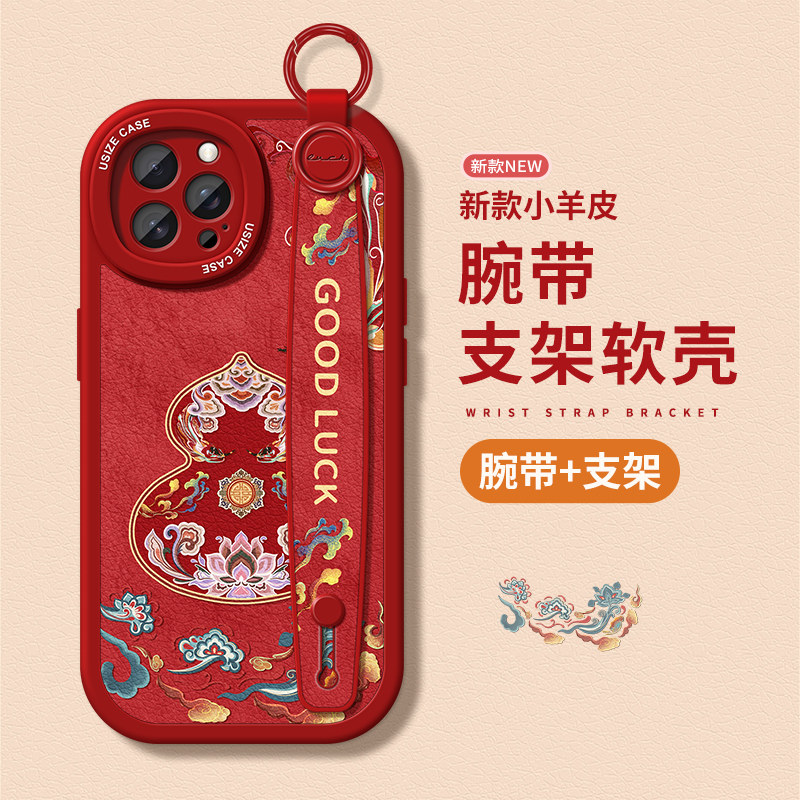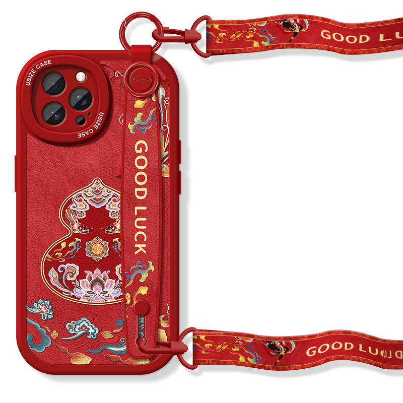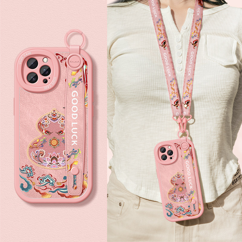 敦煌葫芦适用苹果16Promax手机壳14pro新款女iPhone13全包8p防摔iPhone15腕带挂绳7plus支架6s斜挎挂脖xr背带