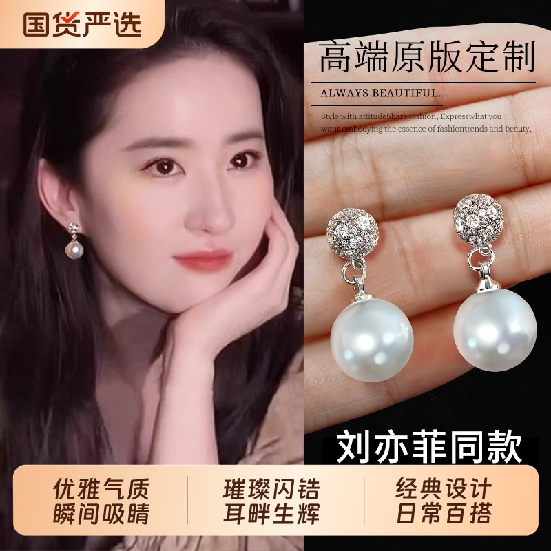 刘亦菲同款S925银针仿珍珠耳钉女耳环无耳洞耳夹2025新款爆款耳饰