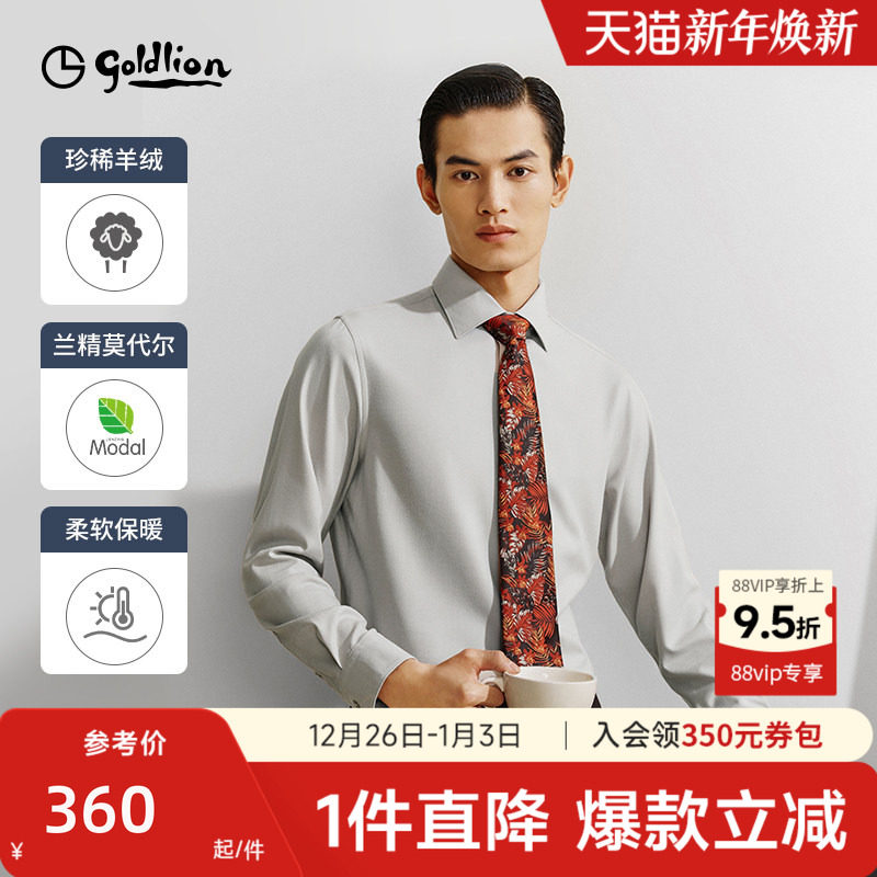 【磨毛含羊绒】金利来秋冬新款正装衬衫弹力莫代尔商务长袖衬衣男