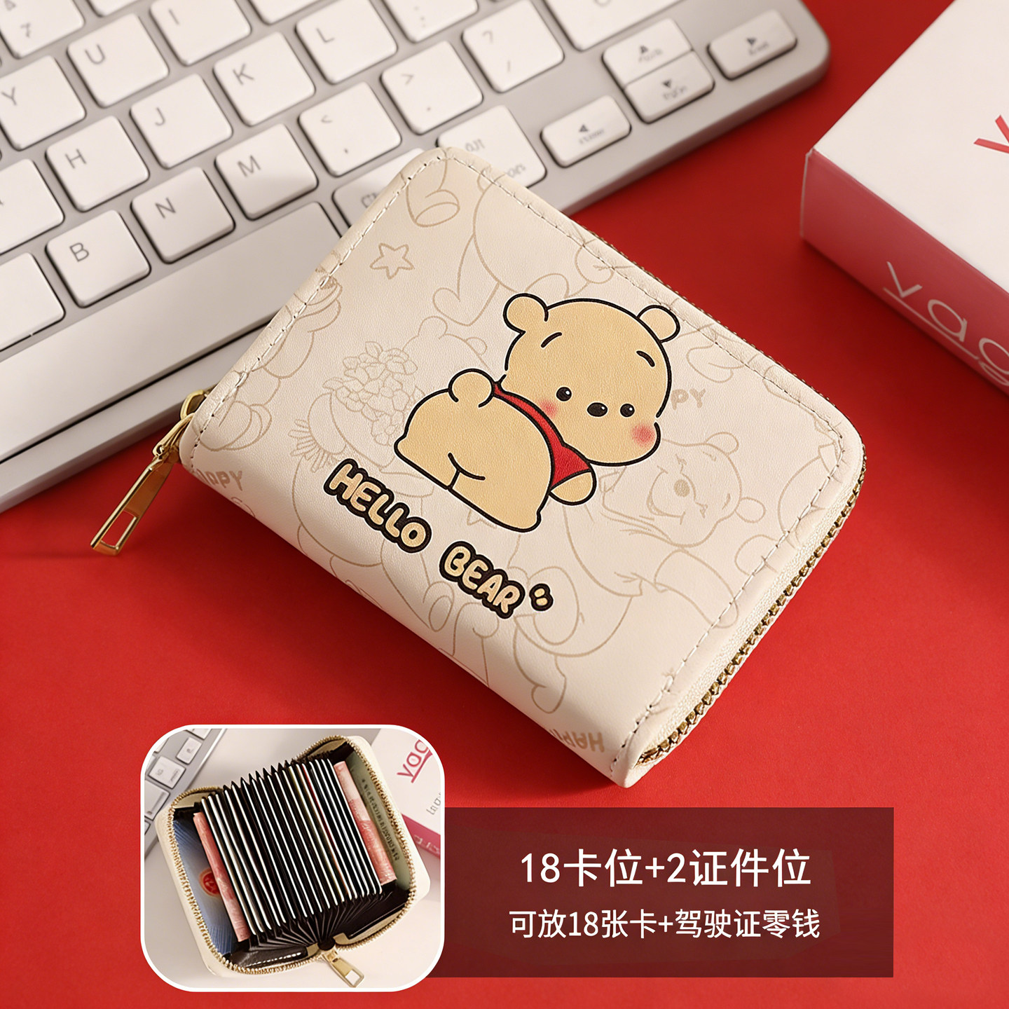 可爱维尼卡通卡包女防消磁多卡位驾驶证件套小巧收纳夹包卡套钱包